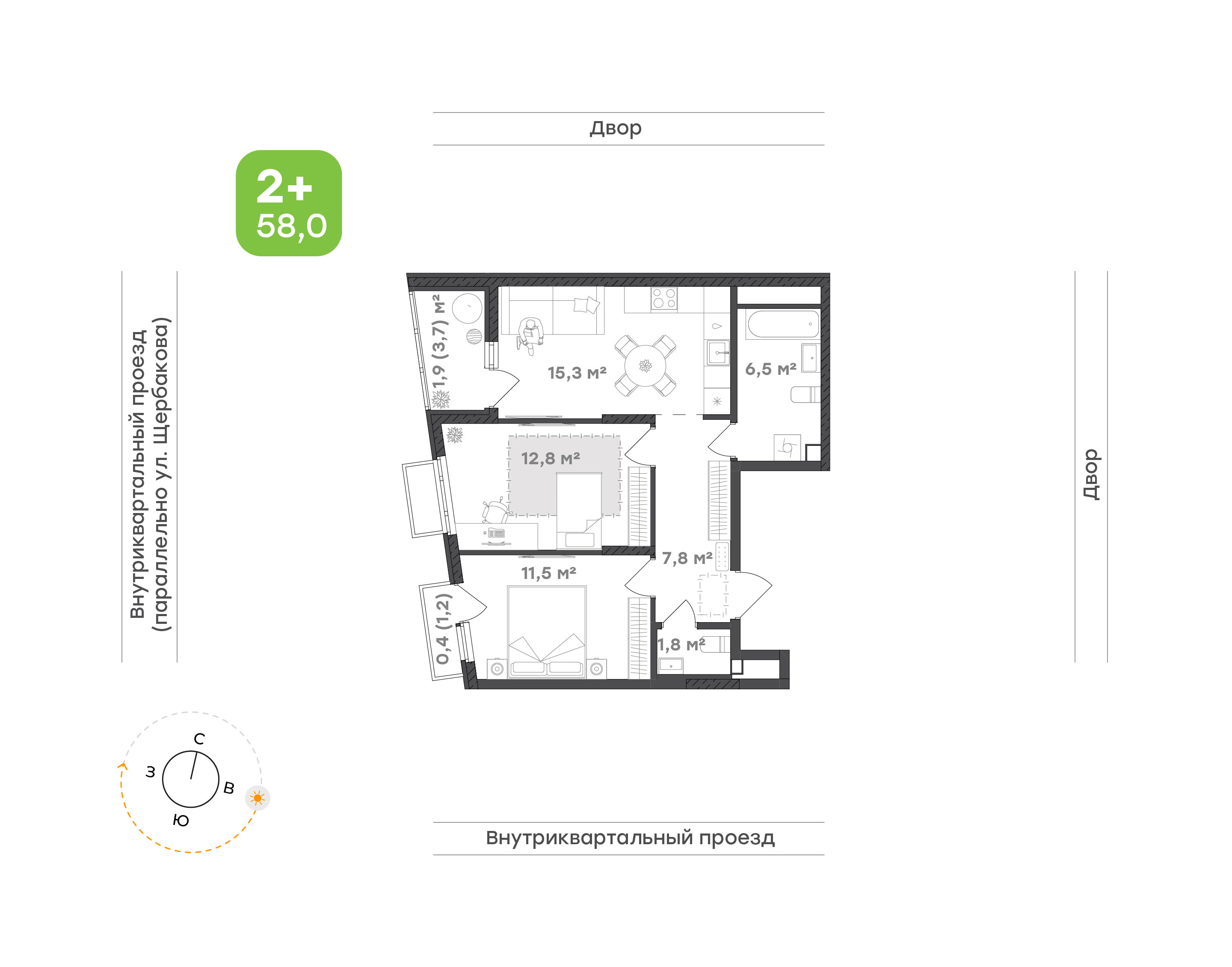 В 15 минутах езды расположен популярный ТРЦ «Глобус» с огромным гипермаркетом. А для яркого досуга — крупный аквапарк и огромный детский развлекательный центр.