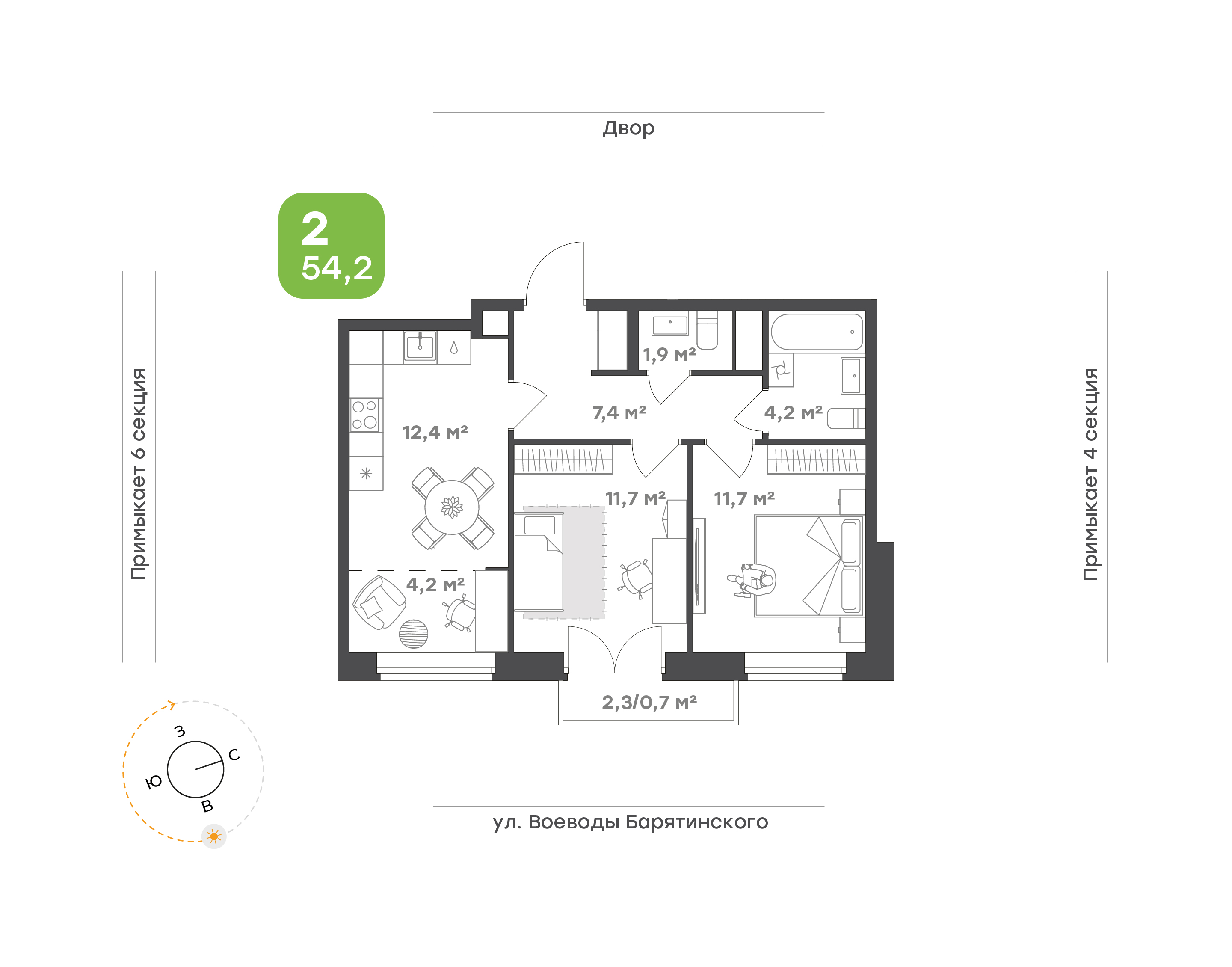 Сквозные подъезды позволяют свободно проходить во двор, а прозрачные входные группы наполняют пространство естественным светом. В высотных секциях установлены раздвижные двери, обеспечивающие лёгкое и бесконтактное открывание. В холлах предусмотрены колясочные с креплениями для велосипедов — функциональное решение для активных жителей «Ботаники».